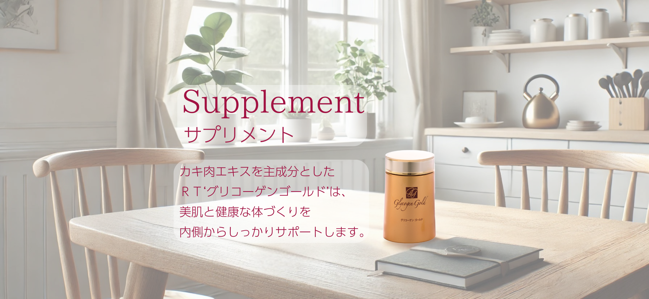 「グリコーゲンゴールド」で美肌と健康づくりを 『グリコーゲンゴールド』は、カキ肉エキスを主成分としたRTオリジナルのサプリメントです。単純に足りないものをさまざまに補給するのではなく、お飲みいただいた方の本来体が持つ機能を自分自身の力できちんと働かせることを目指しておつくりしました。規則正しい食生活と共に、『グリコーゲンゴールド』が美と健康づくりをお手伝いいたします。 体本来の働きを取り戻すことを目指したRTのサプリメント サプリメント(補助食品)は、ドラッグストアやコンビニエンスストアなどでも手軽に購入できるほど身近なものになりました。その多くは、ビタミン不足やカルシウム不足、鉄不足や腸内細菌を増やす…など、日常の食事では不足していると思われるものを摂れば補えるという考えでつくられたものがほとんどではないでしょうか?しかし、RTの考えはそうではありません。人間の体は試験管ではありません。また、人間の体に流行もありません。何かが足りなければ、それを外から補えば済むというような単純なものではないのです。もし、外から入ってくるのが当たり前だと脳が認識してしまったら、自分自身の力で食事からそれらを補給する機能をかえって衰えさせてしまう危険さえあります。 RTでは、脳と自律神経をきちんと働かせることが、美しく健康な体を維持するために重要なことだと考えております。そのためには、体の働きの全てを司る脳の唯一のエネルギー源であるブドウ糖をきちんと補給することが大切です。それにより脳は、本来なすべき仕事をきちんと行い、全身の機能も正しく働かせることが出来るのです。 カキ肉エキスを主成分とした『グリコーゲンゴールド』は、人間の体を司る脳の働きに着目し開発したRTだけのオリジナルサプリメントです。ひと口にカキ肉エキスと言いましても、カキ肉エキスを主成分としたサプリメントも数多く存在します。カキ肉エキスであれば何でも良いというわけではありません。 『グリコーゲンゴールド』は、厳選した原料を独自の方法で徹底して不純物を取り除き、純度を高めておつくりしました。『グリコーゲンゴールド』は、規則正しい食生活をしていれば、他のサプリメントを併用する必要はありません。もちろん男女年齢を問わず、どなた様でもお飲みいただけます。ご愛用いただければ、きっとその違いにお気づきになることでしょう。 お使いのブラウザは動画再生に対応していません。 動画を開く