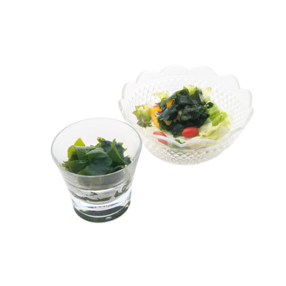 美しい緑色をそのままにシャキッとした食感の若布食べやすいサイズの塩抜きの要らない乾燥若布は、お手軽に味噌汁やスープにそのまま入れて、また、サラダや酢の物など毎日の食卓に常備すると便利です。